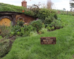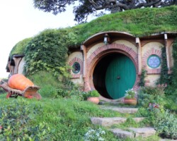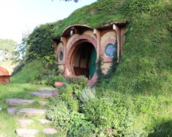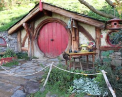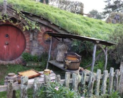 Im weiteren Verlauf der Tour konnten wir noch viele weitere Hobbit Holes sehen und bei einem davon auch ein Foto in der Eingangstür machen lassen. Einer der Höhepunkte war das Haus der Beutlins. Von dort aus ging es wieder den Berg hinunter zur Party-Wiese und dem angrenzenden zu Hause von Samweis Gamdschie. Unser Guide erzählte uns hier von einer Geschichte der besonderen Art. Da der Schauspieler von Sam, Sean Astin, seine Familie seit 5 Monaten nicht mehr gesehen hatte, wurde er Teil einer schönen Überraschung. In der letzten Szene des dritten Herr der Ringe Films kommt Sam zurück nach Hause und seine Tochter läuft ihm vor dem Haus entgegen und umarmt ihn. Die Schauspielerin der Tochter, war die echte Tochter von Sean Astin, dem Schauspieler von Sam. Somit war die Überraschung und Freude, die man ihm in dieser Szene ansehen kann, nicht gespielt und er wurde wirklich überrascht.