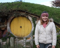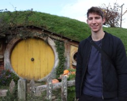 Mit dem Bus ging es durch die gewohnten grünen Hügel-Landschaften, die man in Neuseeland eigentlich überall zu Gesicht bekommt, ins Auenland, der Heimat von Bilbo, Frodo & Sam. Schon während der fünfminütigen Fahrt tauchten wir in das wahre Herr der Ringe-Feeling ein und wurden mit einem Video von Gandalf und dem Regisseur, Sir Peter Jackson, begrüßt.