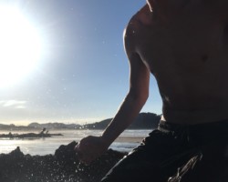Als unser Wasser später wieder abgekühlt war und immer mehr Leute gingen, zogen wir um und hatten nun beide richtig heiße, eigene Pools. Nachdem Anja noch ein bisschen mit Krzysiek, der Nachtschicht hatte, telefoniert hatte, haben wir uns dann auch auf den eiskalten Rückweg gemacht. Leider hatte sich Luca nicht die genaue Uhrzeit gemerkt, bis wann der Spaten, für den er als Pfand seinen Reisepass hinterlegen musste, zurückgegeben werden sollte. So kam es, wie es kommen musste: er stand vor der geschlossenen Ladentür und fand glücklicherweise eine Notiz vor, auf der stand, dass er seinen Reisepass gegenüber abholen könne. Abschließend ging es dann noch unter die kalte Stranddusche, die zum Glück nicht so kalt war, wie erwartet. Der Weg durch den kalten Wind war dann wohl deutlich schlimmer…