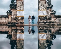Die Spiegelung auf dem „Boden“ entsteht nicht etwa durch perfekt spiegelndes Wasser, sondern dadurch, dass der Fotograf einfach eine Glasscheibe unter die Kamera hält… Wir hoffen natürlich, dass wir jetzt nicht allen den Reiz an diesem Foto-Spot genommen haben. Aber keine Sorge: es gibt deutlich mehr auf Bali zu erleben und eine Reise dorthin lohnt sich definitiv!